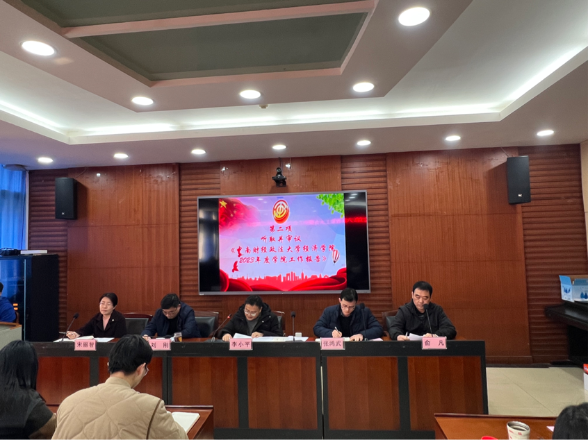 1月11日下午,经济学院第六届教职工大会暨分工会会员大会第二次会议在文泉楼南206会议室举行。会议由教代会主任宋丽智主持,主要议程有听取并审议学院2023年度工作报告、财务工作报告、工会工作报告、增选分工会委员会委员,表彰2023年度经济学院“科研、教学奖”,以及基金申报交流等内容。