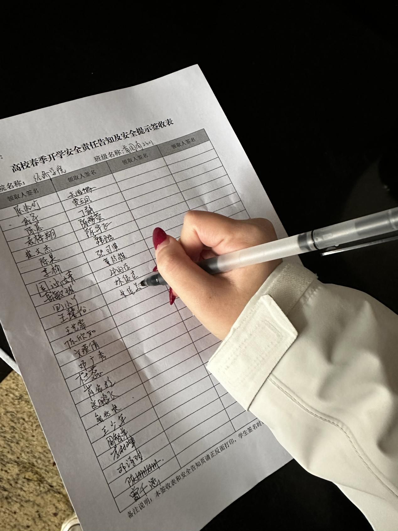 “线上”宣传+“线下”签署承诺书。各年级以班级为单位,采取线上QQ群、微信群宣传,线下发放《高等学校春季开学安全责任告知书》《高等学校春季开学安全温馨提示》《学生宿舍消防安全“十严禁”》等文件的方式,组织同学签名,保证各类安全注意事项告知到位。
