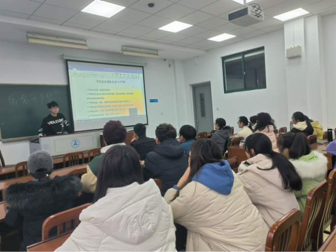 听了同学们丰富多彩的寒假见闻和经历,2022级本科生辅导员周琼肯定了大家的收获。她表示,通过亲身实践,用眼观察、用耳倾听、用心思考,才能对国家、社会及所处时代有更真切的认识、更深刻的体悟。她寄语同学们要继续保持优良作风,将学思践悟相结合,始终与时代发展同频共振,与党和人民同向同行,用实际行动贡献新时代的青年力量。同时,结合社会对人才需求的大背景以及本学期学业规划和安排,引导同学们清醒认识,端正学习态度,尽早明确职业规划。并提醒同学们新学期注意人身、财产、食品、交通安全,特别注意防火防盗防骗(防电信网络诈骗)、防溺水、防艾滋、防传染性疾病,自觉抵制迷信、邪教、传销和非法校园贷,进一步提升同学们的安全意识。会后发放《高等学校春季开学安全责任告知书》《高等学校春季开学安全温馨提示》《学生宿舍消防安全“十严禁”》等文件,组织各班签名,保证各类安全注意事项告知到位。