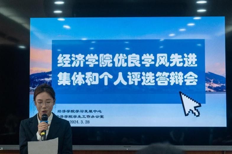 (学生通讯员 张思婷 摄影 何胤良)为进一步加强学风建设,树立先进典型,汲取榜样力量,营造积极乐学向上的学习氛围,2024年3月28日下午,经济学院学习发展中心在文泉楼南206会议室举办“博文明理肯勤学,砥砺奋发向未来”优良学风先进集体和个人评选答辩会。经济学院党委副书记俞凡、学生工作办公室主任周琼、2020级本科生辅导员孟庆红和2023级本科生辅导员包伦娜担任答辩评委。经济学院各年级学生代表到场观看。