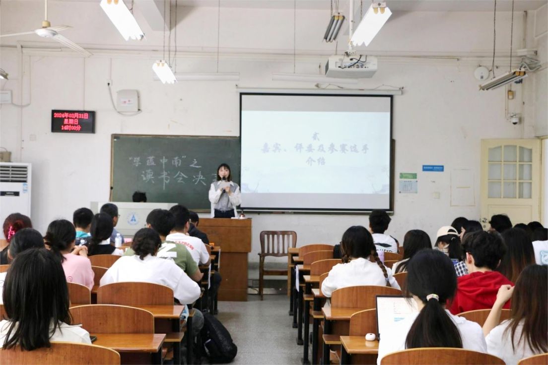 (学生记者 朱佳颖 摄影 龚美晨)鱼离水则身枯,心离书则神索。为了丰富同学们的课余生活,提高在校学生的文化修养和综合素质,经济学院第十届“学蕴中南”读书会决赛于33114时在我校南湖校区文澜楼208室顺利举办。本次活动由经济学院学生会学术部主办,经济学院陈立兵副教授和新国者传媒总经理、新潮读书会总经理黄国新担任大赛评委,向宇璐同学担任主持人,经济学院20212022级各班代表到场参会。