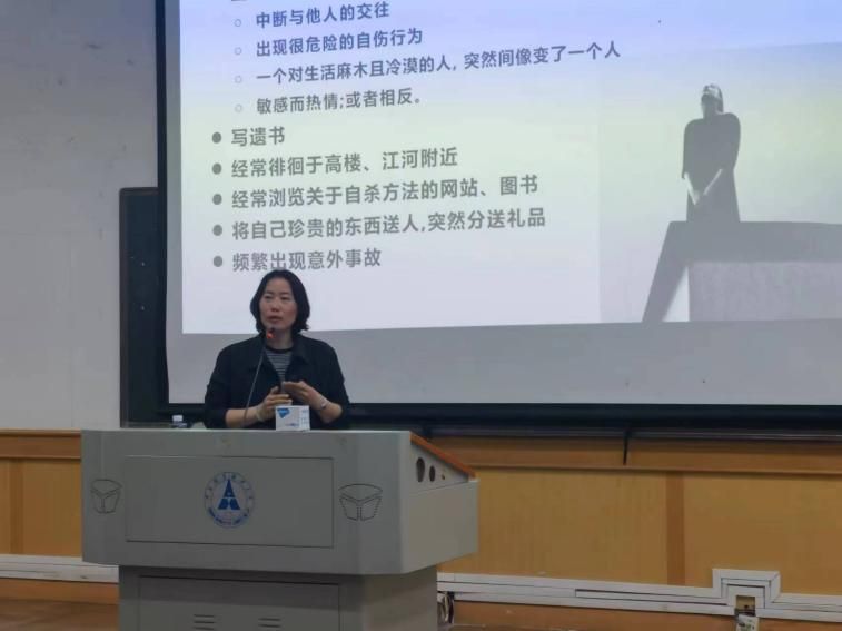 刘青老师以生动形象的案例为起点,介绍了心理危机在行为认知生理心理四个方面的反应和自杀的风险等级,使同学们对心理危机有了初步认知。接着,刘老师详细讲解了自杀者的心理感受朋辈互助的正确态度和方法,强调共情是朋辈互助的核心,并着重提及朋辈互助的最佳方式是寻求专业人士的帮助。最后,刘老师介绍了我校心理健康教育咨询中心的资源配置以及寻求心理帮扶的有效途径希望通过本次培训,能够帮助我校学生正确处理心理问题,减少心理危机的发生树立健康的心理意识