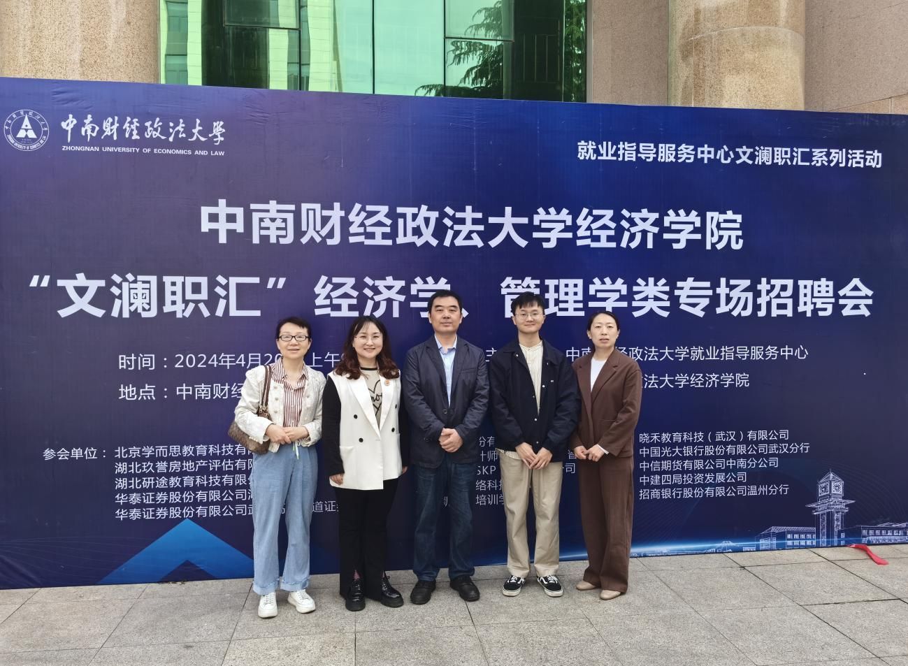 为深入学习贯彻党的二十大精神,全面落实党中央、国务院对高校毕业生就业工作的决策部署,深化校企合作,实现用人单位与人才资源的精准对接,推进毕业生更加充分、更高质量的就业,420日,由中南财经政法大学就业指导服务中心主办、经济学院承办的“文澜职汇”经济学、管理学类专场招聘会于文潭楼一楼大厅顺利举办。就业指导服务中心副主任张艳芸、市场部主任张晶,经济学院党委副书记俞凡,2024届毕业班辅导员孟庆红、沈鹏飞参加了此次招聘会。