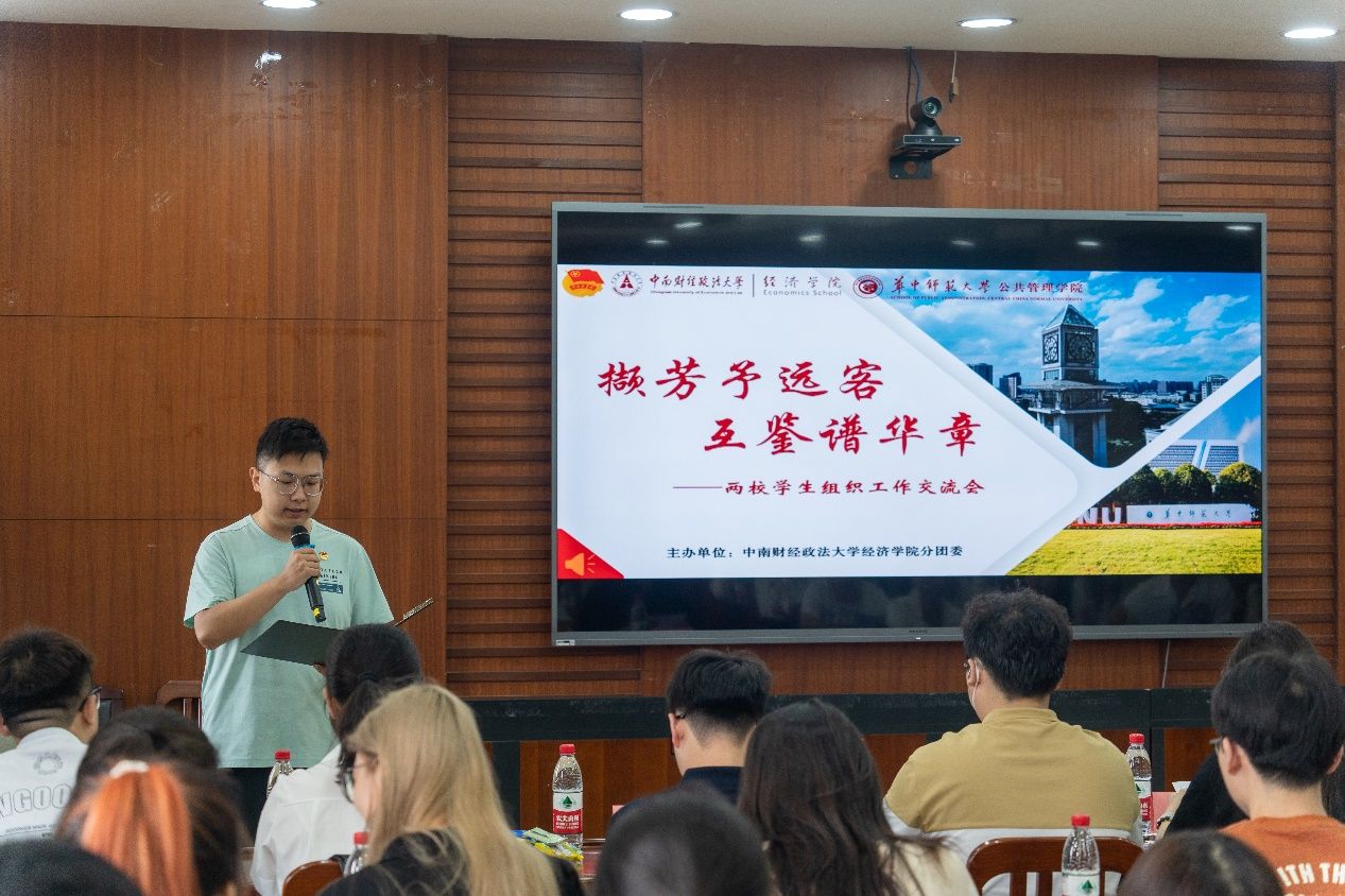 (学生记者 龚美晨 摄影 何胤良)五色交辉,相得益彰;八音合奏,终和且平。为更好地探讨分团委学生会(以下简称“团学”)工作的新思路、新方法,不断提升团学工作的质量水平,半岛线上平台团学组织与华中师范大学公共管理学院团学组织携手举办的“撷芳予远客,互鉴谱华章”团学组织工作交流活动于51210时在我校文泉楼206会议室顺利开展。本次活动由经济学院分团委组织部主办,两校团学组织学生干部参与本次活动,我院组织部成员刘煊凯担任主持人。