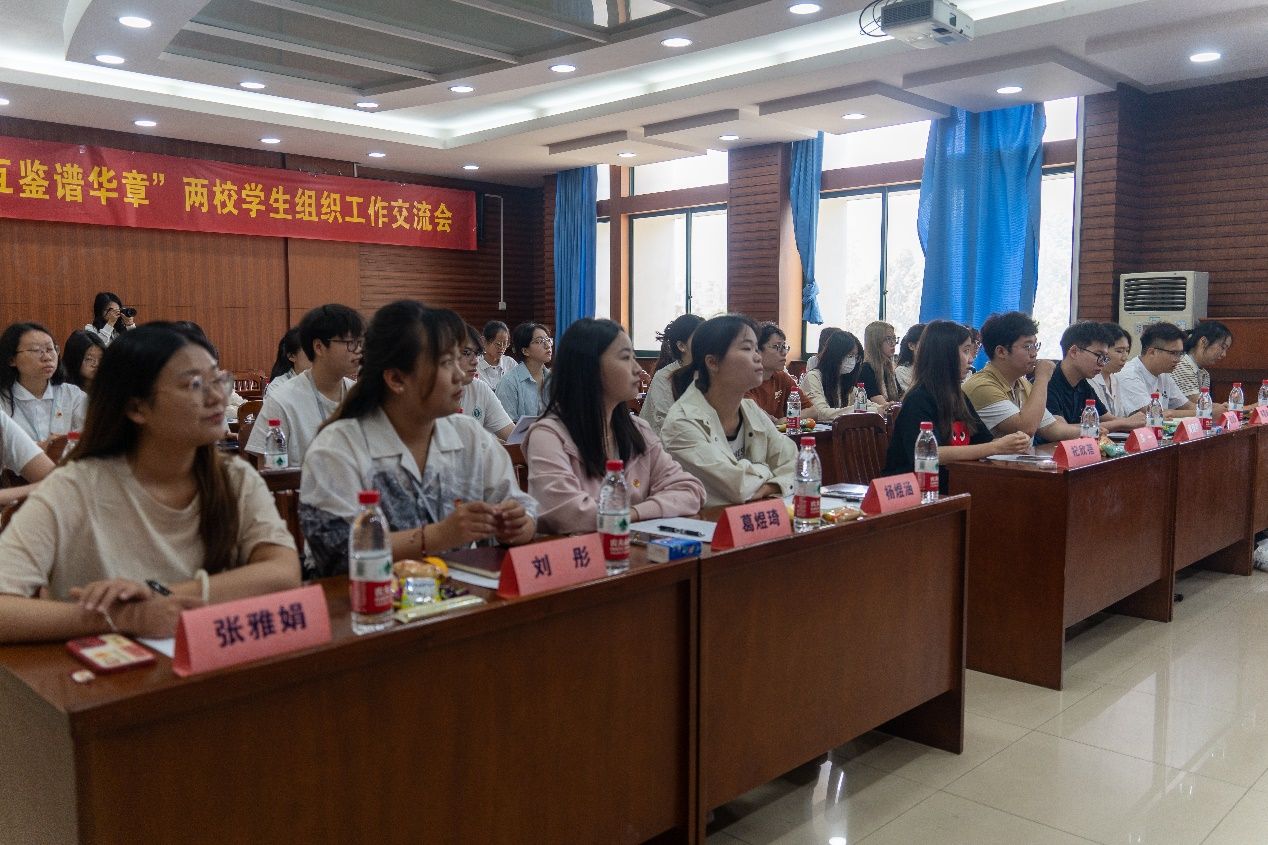 经验因多样而交流,因交流而互鉴,因互鉴而发展。两校的团学代表杞欣蓓、周润荻同学分别上台分享在团学组织工作中取得的经验和成果,从组织架构、管理模式和工作职能等方面展开详细介绍,为彼此提供了宝贵的团学工作经验与方法。