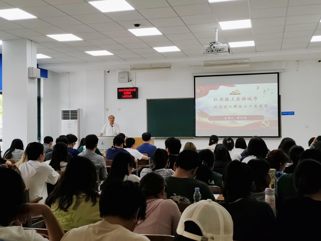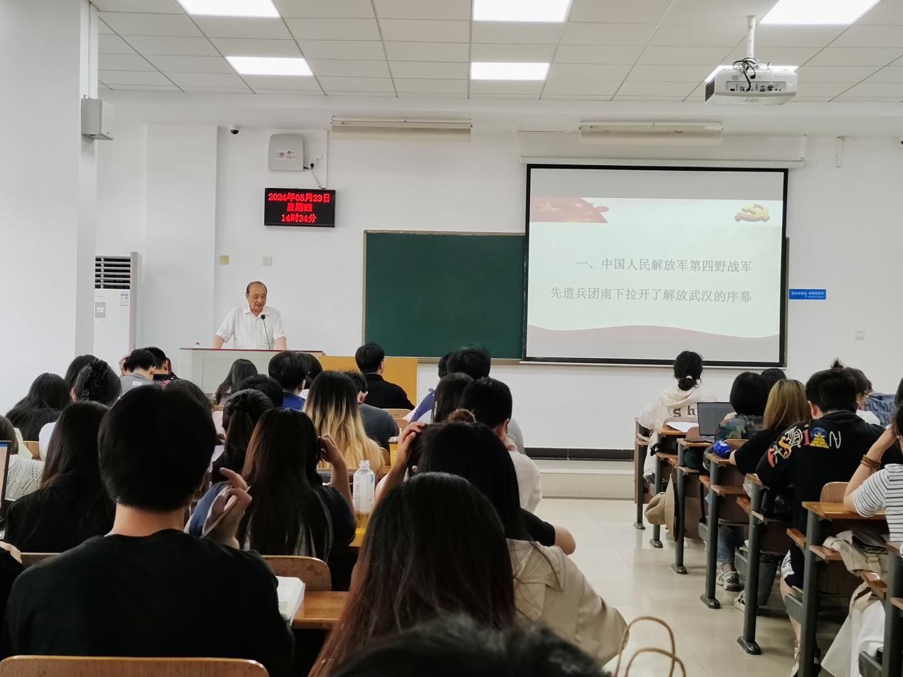 胡江滨教授从“中国人民解放军第四野战军先遣兵团南下拉开了解放武汉的序幕”“武汉是一座英雄的城市”“武汉解放的重大意义”三个方面来阐述解放武汉的过程以及历史意义。