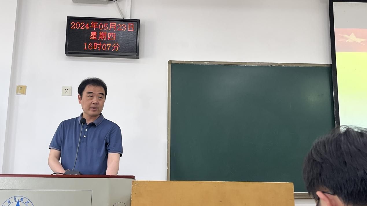 (通讯员 覃徐欢)赓续百年初心,铸就红色江城,七十五载栉风沐雨,英雄城市砥砺前行。为纪念武汉解放七十五周年,5月23日,经济学院于文泰楼109面向本科生第一、第二、第三党支部举办了“红旗插上英雄城市——纪念武汉解放七十五周年”主题党课。本次党课邀请了原经济学院党委书记、现学校离退休人员党委副书记、学校关心下一代工作委员会副秘书长胡江滨教授主讲,经济学院党委副书记俞凡主持,2020级本科生辅导员沈鹏飞、经济学院本科生全体党员参加了本次党课。