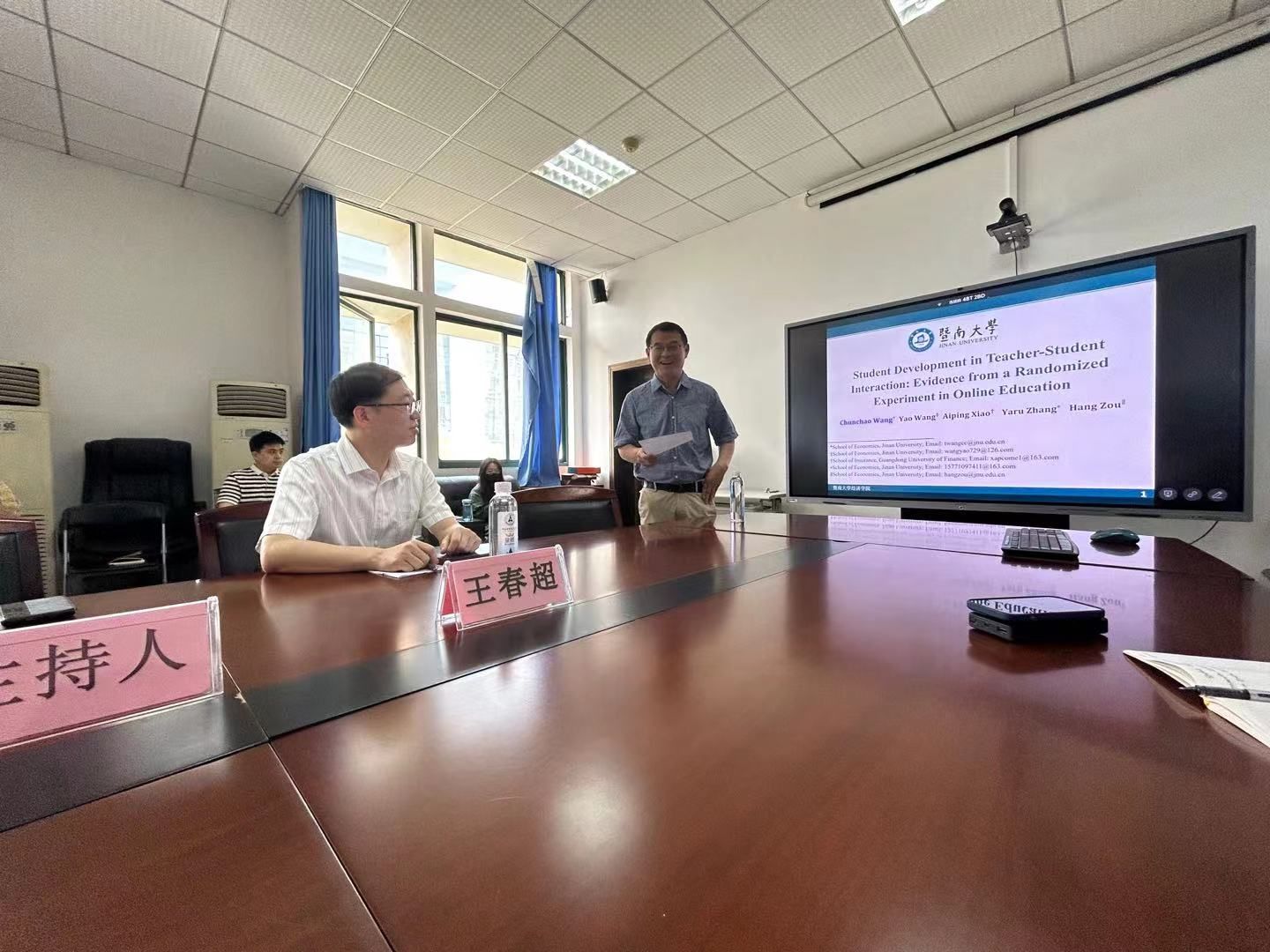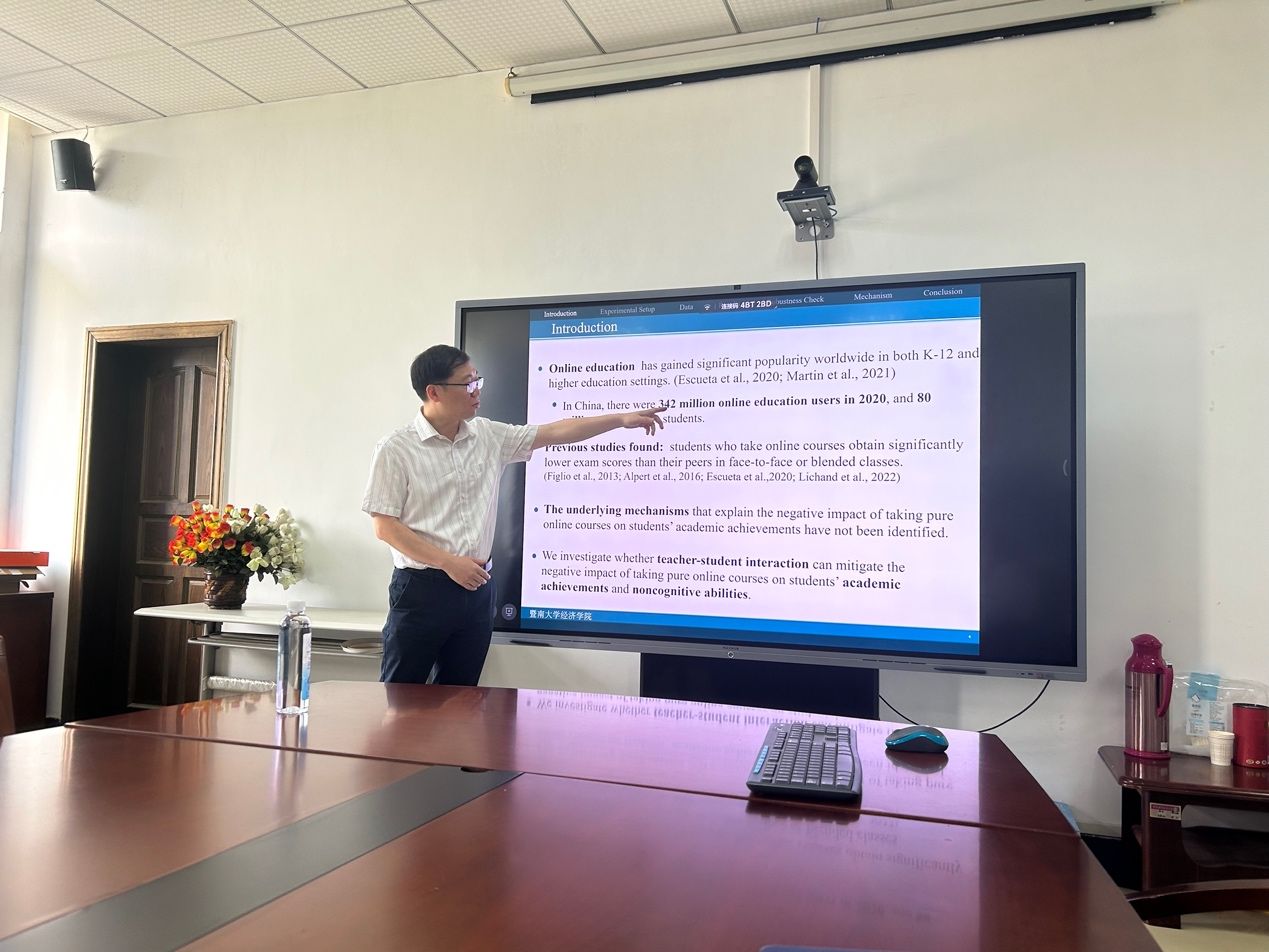 2024年6月6日上午9:00,经济中南“文澜高端论坛系列活动”第58期讲座在文泉楼南207会议室成功举办。本期特邀暨南大学经济学院院长王春超教授作为主讲嘉宾,经济学院院长石智雷教授担任主持人,讲座主题为“Student Development in Teacher-Student Interaction: Evidence from a Randomized Experiment in Online Education”。我院周强副教授、潘峣副教授、叶琴博士、袁璐璐博士等30余名师生参加了本次讲座。