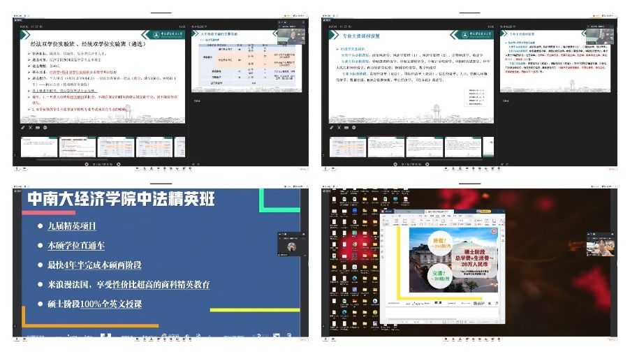 随后,专业教师代表向同学们介绍了二次招生的相关事项。谢靖副教授从经法、经统双学位实验班与经济学基础班的区别、双学位实验班的优势引入,介绍了双学位实验班的培养模式及注意事项。黄赛男副教授介绍了中法班项目的留法优势、合作院校、项目优势和毕业生去向,并对课程设置、专业选择等项目特色做出详细解释。针对同学们的疑问和家长关心的留学费用、教育环境等重点问题,法国雷恩商学院法方代表杜老师进行了一一解答。