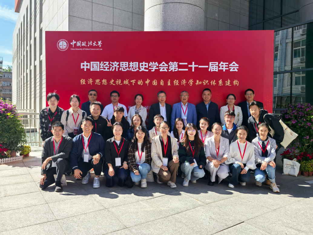 2024年9月21-22日,中国经济思想史学会第二十一届年会在北京成功举办。本次年会由中国政法大学、中国经济思想史学会主办,中国政法大学商学院承办,《中国经济史研究》编辑部协办。来自北京大学、清华大学、社会科学院研究所、中国政法大学、中南财经政法大学等高校的200多名专家和学生参会。其中,我院邹进文教授、朱华雄教授、宋丽智教授、陈立兵副教授、陈国涛老师和李萌博士、王文博士等17位向年会提交了论文的博士、硕士研究生与会。