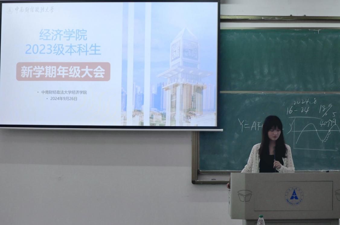 (通讯员 黄梓涵 摄影 段雨庭)新学期,新征程,前途漫漫亦灿灿。为扎实做好新学期开学各项准备工作,确保新学年良好开局,2024年9月26日下午,经济学院于文波楼211教室召开了2023级本科生新学期年级大会。本次会议由辅导员包伦娜老师主持,2023级全体本科生参加。