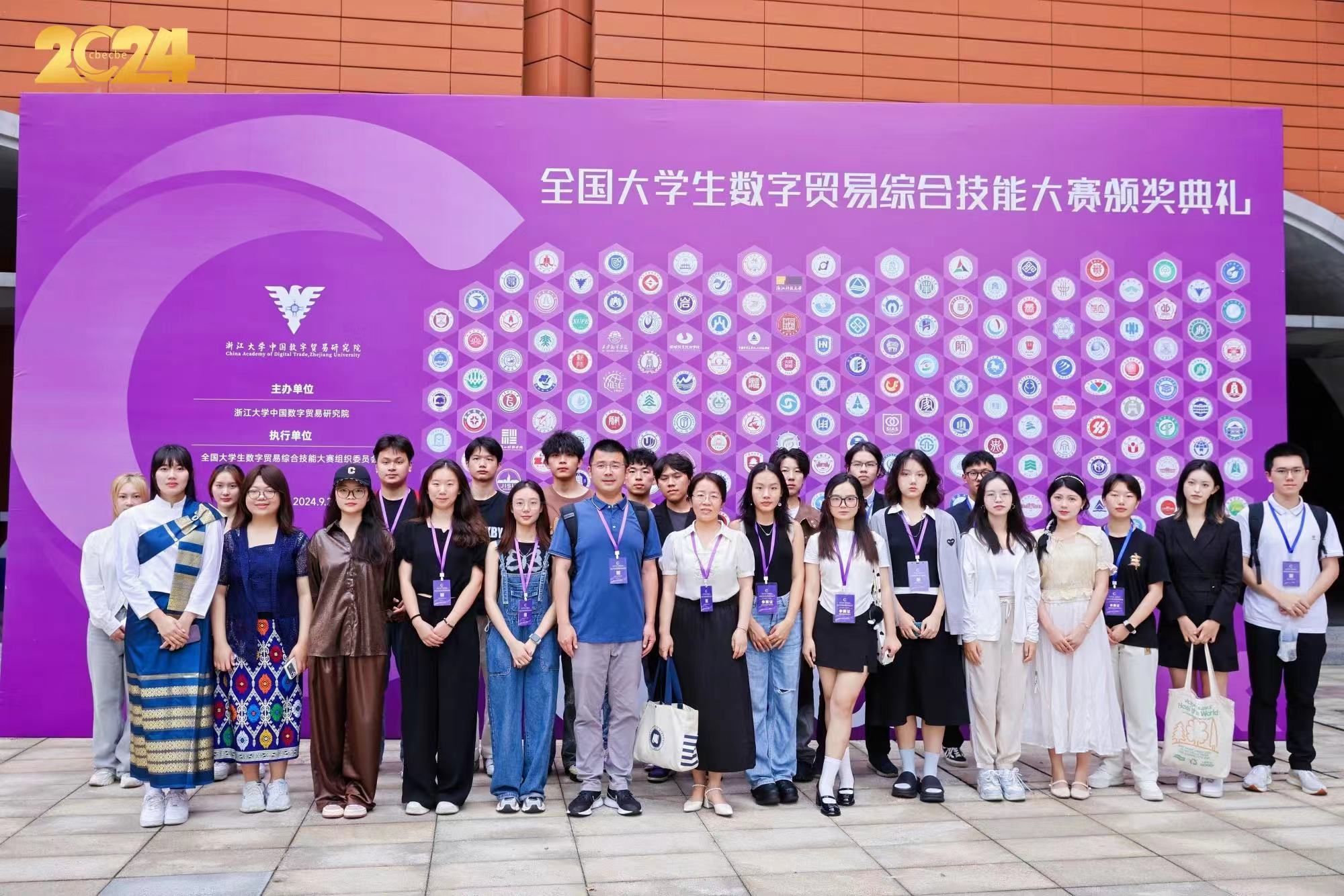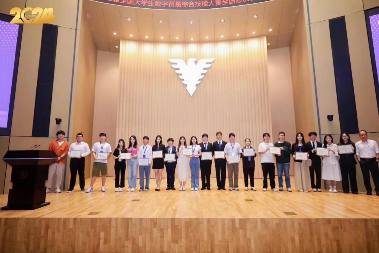 2024年9月28至29日,第三届全国大学生数字贸易综合技能大赛迎来了全国总决赛。本次大赛设置了四大赛道,分别为数字贸易创新创业赛道、数字贸易大数据分析赛道、数字贸易跨境直播赛道以及丝路电商来华留学生赛道,分别在浙江大学紫金港校区、杭州师范大学仓前校区、浙江外国语学院和浙江财经大学下沙校区四校同步展开。大赛自2月启动,历经初赛、区域赛、全国总决赛三个阶段,得到了社会各界的广泛关注和全国高校的积极响应,吸引了来自29个省、自治区、直辖市的527所高校、两万余名师生参与。半岛线上平台副院长宋丽智教授和国际经济学系主任潘安教授带队前往浙江大学参加总决赛,杨波教授、吴姗姗教授、周强副教授、张亮、周上尧等多位老师全程指导参赛团队。最终,我院团队取得了优异成绩,斩获一等奖1项、二等奖4项、三等奖2项,其中2022级国际商务本科专业张隽雅同学领衔的“智航探数队”荣获数字贸易大数据分析赛道一等奖!此外,经济学院还荣获赛事颁发的“优秀组织奖”,国际经济学系潘安教授和周上尧老师荣获“优秀指导老师奖”。