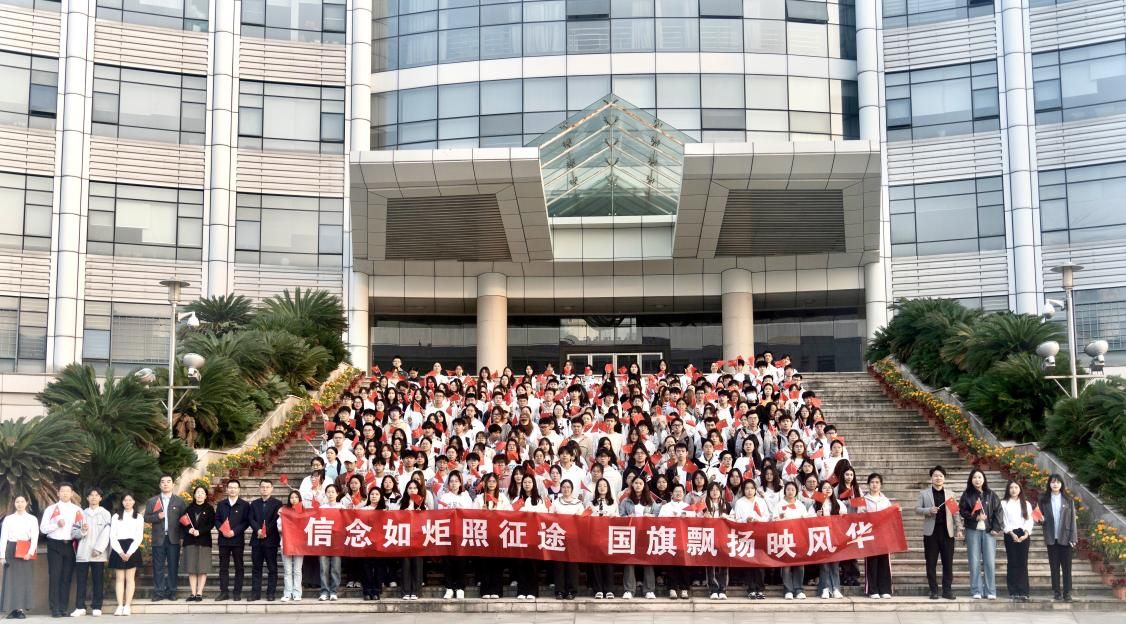 (图1:领导老师、经济学院2023级本科生参加升旗仪式)