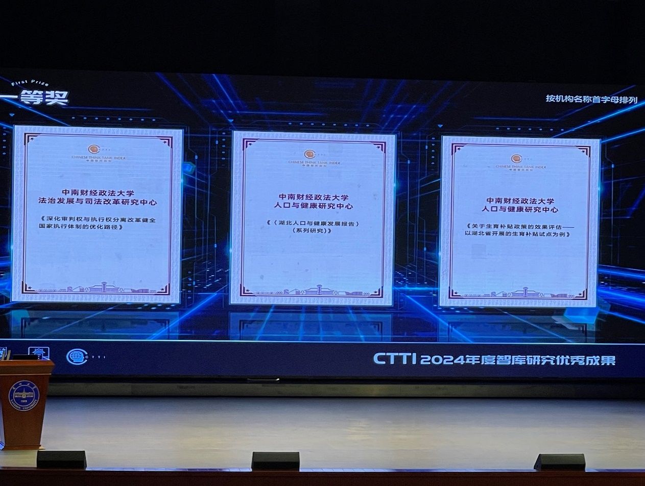 我院智库成果取得新突破:石智雷教授团队荣获CTTI 2024年度智库示范案例、优秀成果一等奖(2项)