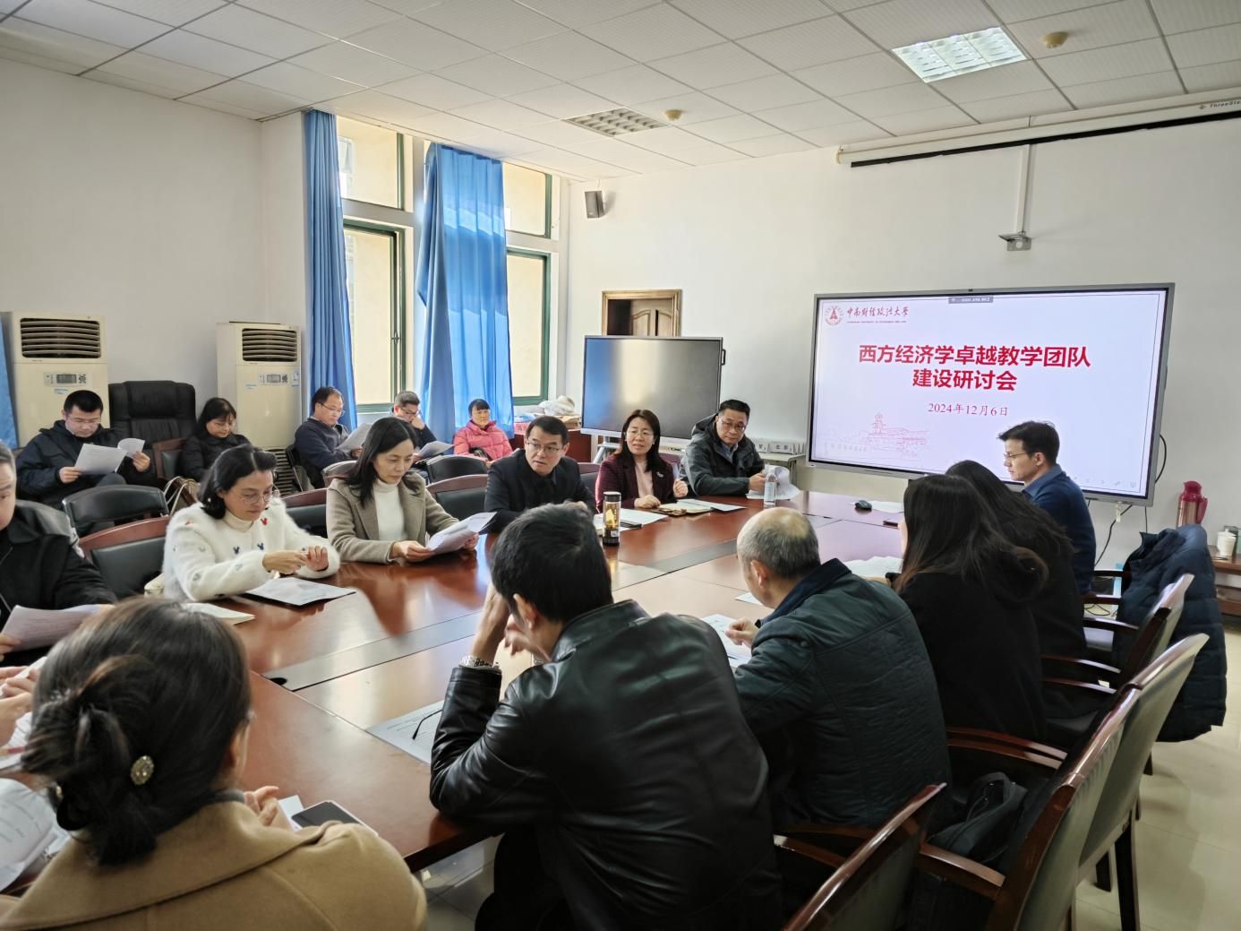 为进一步落实立德树人根本任务,深化本科教育教学改革,提高本科教育教学水平和人才培养质量,2024年12月6日下午,经济学院于文泉楼南207会议室召开西方经济学卓越教学团队建设研讨会。经济学院院长石智雷,副院长宋丽智、张鸿武,经济学系主任谢靖、副主任潘峣,西方经济学教研室主任刘玲,《微观经济学》《宏观经济学》课程组全体成员出席会议。会议由宋丽智副院长主持。