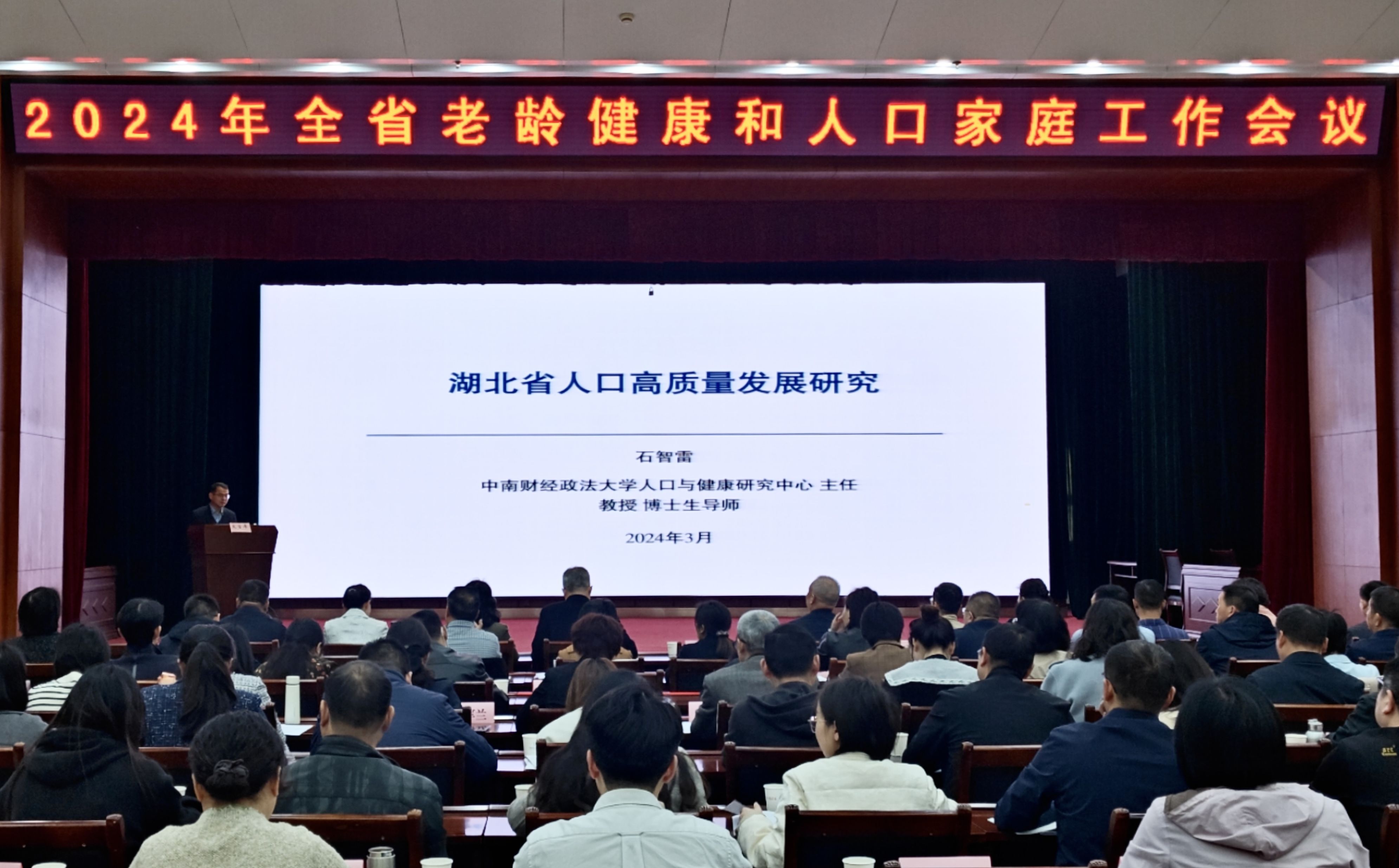 石智雷教授受邀在“2024年全省老龄健康和人口家庭工作会议”作专题讲座