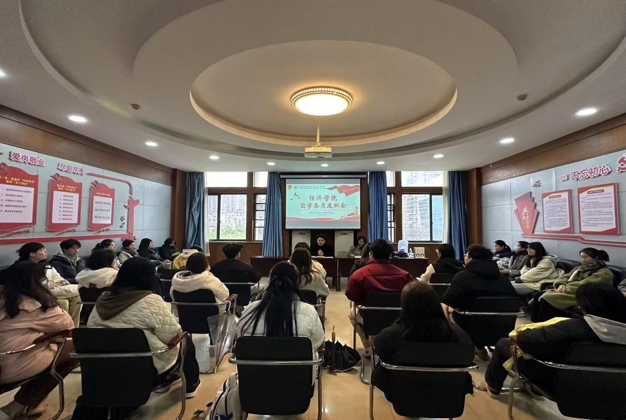 (学生记者 陈思婕 摄影 段雨庭)同心协力共奋进,砥砺前行展宏图。为明确新学期团学志各部门的工作任务和目标,确保各项工作有序推进,经济学院团学志月度例会于3月3日中午在文泉楼306室顺利举行。经济学院团委书记陈远瞻、团委副书记陆贝蓓主持会议,主席团成员、团学志各部门部长到场参会。