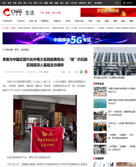 与此同时,中华网和基层网等多家具有广泛影响力的社会媒体对“湘”约石鼓实践团的实践项目进行了全方位、多层次的报道。
