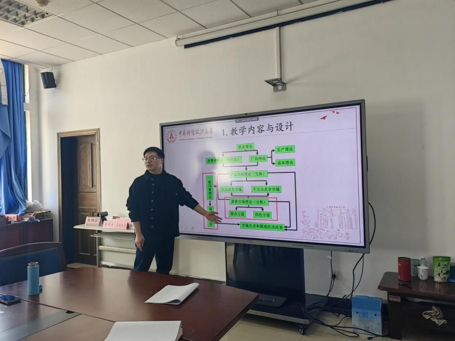在课程组教师交流与讨论环节,与会教师们积极发言,针对《微观经济学》《宏观经济学》课程的教学内容设计、思政元素融入、知识体系重难点、教研创新等问题进行了集中研讨。经过反复讨论,课程组教师在教学理念和核心策略上形成了较为一致的观点:第一,对标经济学学科核心素养,明确“理性思维”“政策分析”等能力目标;第二,通过思维导图拆解经济学模型推导路径,强化学生逻辑链条构建能力;第三,建立“经济学原理-中国实践-价值观引导”三位一体教学框架,将思政元素深度融入经济学理论教学;第四,建立“主备人初案+课程团队联评+学情反馈”三级修订流程和动态优化机制。