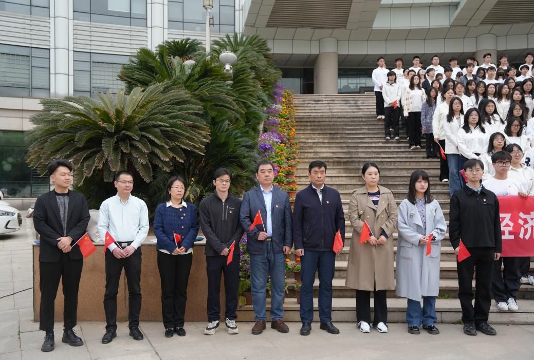 (学生记者 胡漪 摄影 陈思婕)旗卷风云八秩路,青春铸剑启新程。为筑牢青年信仰根基,淬炼新时代先锋力量,2025年4月7日上午7时,经济学院“赤子丹心护旗扬,青春志远谱新章”升旗仪式于南湖校区中原楼前隆重举行。校党委学生工作部副部长范献龙,经济学院党委书记刘刚,副院长张鸿武、宋丽智,党委副书记俞凡及学生工作办公室的老师们出席仪式,经济学院本科生第一、第二、第三党支部全体正式党员、预备党员、发展对象、积极分子到场参加。