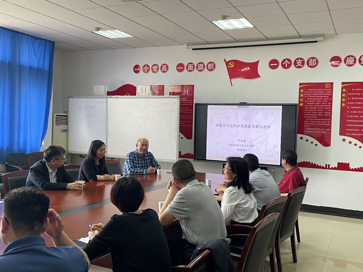 (通讯员:刘利钊)2025年4月27日下午,南京农业大学人文学院教授、博士生导师、中华农业文明研究院副院长沈志忠教授应邀为学院师生做了题为“邹秉文与近代中美农业科技交流与合作”的学术报告。讲座由经济学院副院长宋丽智教授主持。经济学院邹进文教授、常明明教授、瞿商教授、杨祖义教授、张连辉教授,马克思主义学院吴雪梅教授、王玲教授和李成博士,参加讲座。