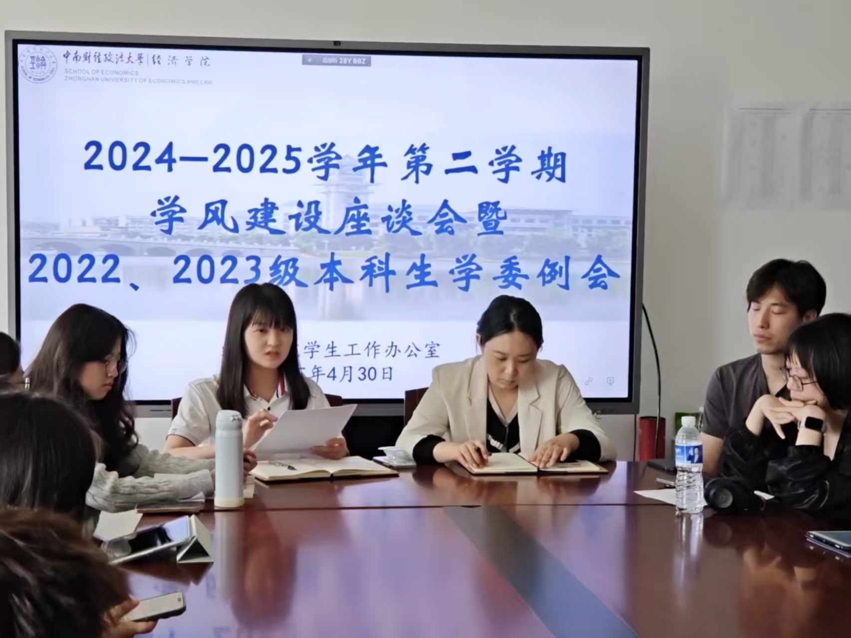 各班学习委员依据前期班级学情的调研结果,就本学期的学风建设与学业情况进行了汇报。从整体反馈来看,多数班级呈现出积极态势,课堂上师生互动积极,课后自主学习蔚然成风,学业状况优良。也有不少班级反映,部分专业课程涉及复杂深奥的理论和抽象晦涩的概念,给同学们的理解带来了较大困难,尤其是《计量经济学》《中级微观经济学》等需要理科思维的学科,使得同学们难以跟上教学节奏,课后复习时更是感到力不从心、压力巨大。