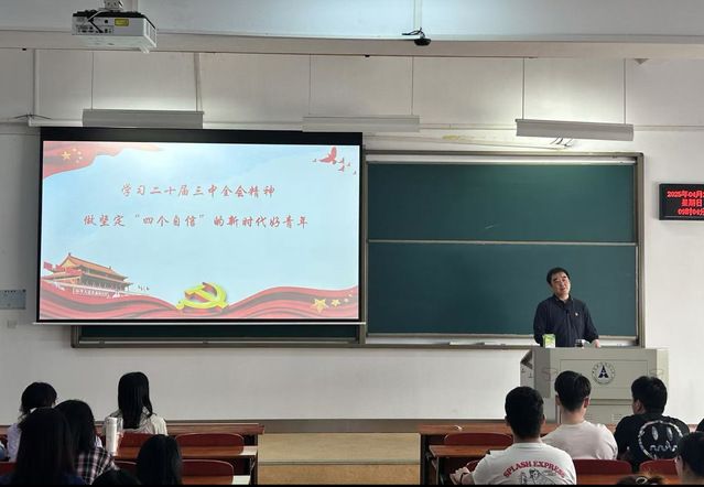 420日上午,经济学院党委副书记俞凡围绕《学习党的二十届三中全会精神 做坚定“四个自信”的新时代好青年》为题,为经济学院发展对象及预备党员带来了一堂专题党课。他强调,当代青年只有坚定四个自信,主动扛起责任担当,笃定攻坚克难决心,才能将爱国之情、强国之志、报国之行融入中国特色社会主义事业、建设社会主义现代化强国、实现中华民族伟大复兴的奋斗之中。