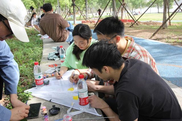 14:30,活动正式开始,13支参赛队伍准备充分,用丰富的想象力为风筝配色,描绘多彩的风筝图案。画笔在风筝上尽情地舞动、明媚的向日葵、可爱的卡皮巴拉、瑰丽绚烂的彩虹……各种充满童趣和巧思的图案,跃然“筝”上。