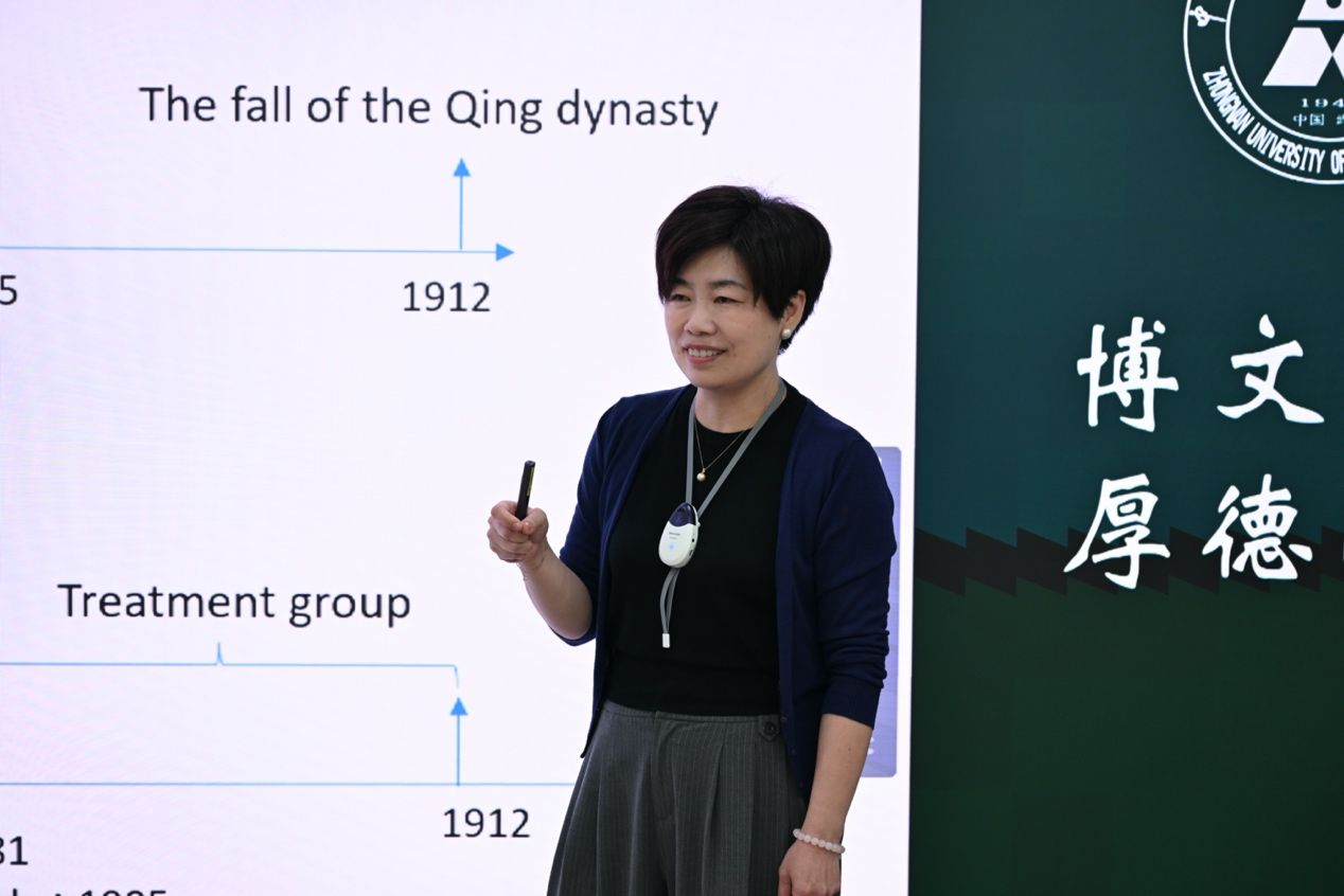 论坛首先由上海财经大学陈媛媛教授带来题为《Technological Shock, Talent Selection Mechanisms, and the Emergence of Engineers in Modern China》的精彩报告。陈媛媛教授的研究利用中国近代洋务运动和1905年科举制度废除的历史背景,采用队列双重差分设计,探讨了技术冲击如何在制度变迁背景下促进技术人才的出现。通过对洋务运动时期企业设立与科举制度废除的历史数据分析,提出制度变革是技术人才培养的重要前提条件。与会嘉宾就人才培养与市场需求的互动、教育选拔制度改革方向、政策建议的逻辑推导以及研究假设的数据验证等问题与陈教授进行了深入探讨。