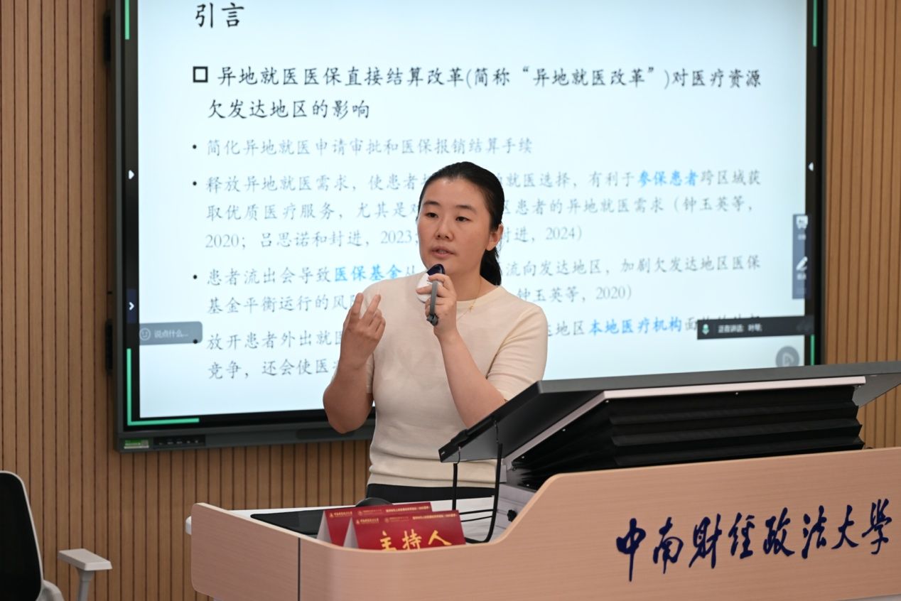 最后,中南财经政法大学的刘玲博士报告了“外部竞争对欠发达地区医疗服务费用和质量的影响”,以异地就医医保结算改革为背景,揭示了医疗费用增加但未带来医疗质量改善的现象,提出医疗机构的策略性应对行为问题。在互动环节,陈媛媛教授、石智雷教授、胡德状博士、梁超研究员等就研究中医院类型的选择依据、病人对政策的知晓程度、返乡人口流动对结果的潜在影响、住院费用指标的选择以及如何更有效地证明医疗机构的反应机制等关键问题与刘玲博士进行了深入且富有建设性的交流。