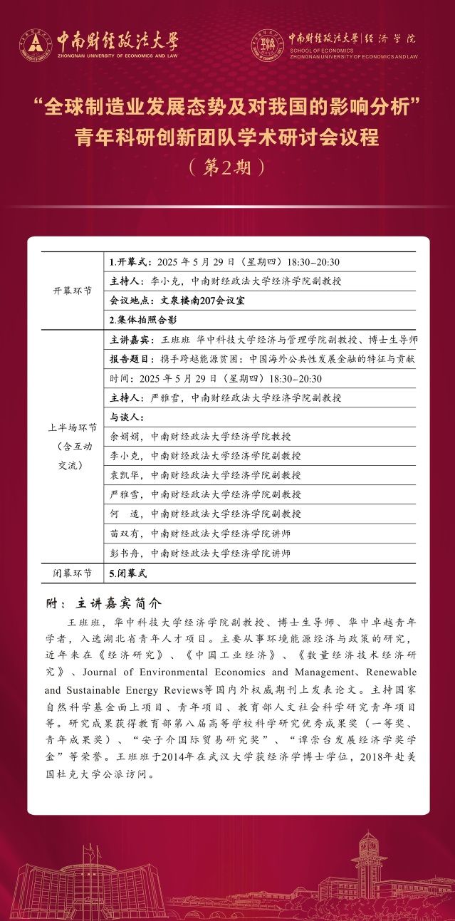 【学术会议】“全球制造业发展态势及对我国的影响分析”青年科研创新团队学术研讨会议程(第2期)
