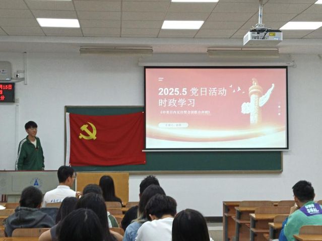 在时政分享环节,各支部党员结合专业视角展开研讨。经济学院党员以“中美关税博弈与全球经济治理”为题,分析关税政策对全球经济的深远影响,提出构建新发展格局的思考。信息工程学院党员则以“量子科技竞速与国家战略安全”为切入点,解读我国量子通信领域突破性进展,强调核心技术自主可控的重要性。分享内容紧扣国家战略与社会热点,体现党员以学促行的实践自觉。
