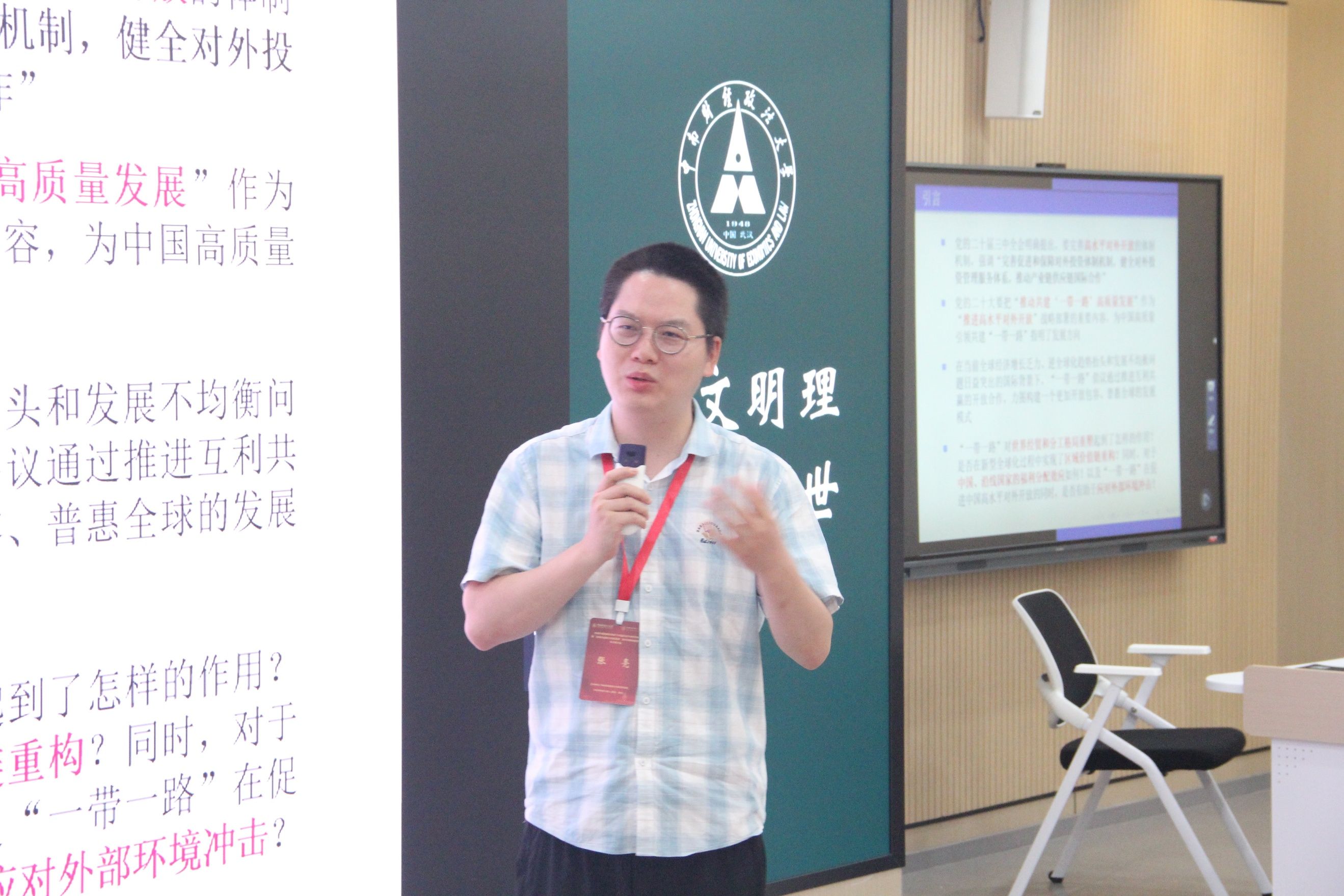 最后,中南财经政法大学张亮博士分享了题为《高质量共建“一带一路”与区域价值链重构:基于跨国生产量化模型基于跨国生产量化模型》的报告。张亮博士首先指出,“一带一路”倡议通过推进互利共赢的开放合作,力图构建一个更加开放、包容、普惠、均衡的发展模式,对世界经贸和分工格局重塑起到了怎样的作用?是否在新型全球化过程中实现了区域价值链重构?接着,张亮博士介绍了一个扩展Caliendo and Parro(2015)的多国多部门一般均衡框架,在此基础上引入企业跨国生产,允许创新活动与生产活动在地理上分离,即企业可进行跨国投资并在东道国生产后转销至最终目的国。结合数据的实证分析发现,“一带一路”倡议重塑了“母国—生产国—目的国”的三边分工格局,推动中国向技术与资本供给端转型(母国环节),逐步确立区域价值链核心地位,助推中国向高附加值环节攀升。在交流环节,与会师生对关键参数的估计等问题展开了热烈的讨论。