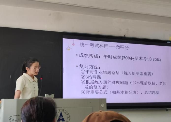 经济2401班逄玉鑫分析班级现状,针对微积分挂科率高的问题,设定期末及格率目标,推荐微积分结合练习册刷题,经济学原理结合网课资源进行学习等方法。经济2402班也以“消灭不及格”为目标,着重强调分析学习方法、态度等问题,计划通过总结错题、调整方法提升成绩。经济2403班汇报人陈栩瑶提出挂科率低于10%的指标,分四级冲刺与专业课攻坚阶段规划复习,以“1+1+1”分组机制促进同学互助。经实2401班在展示中先分析了班级成绩分布,针对微积分挂科率高、英语低分段人数多等问题,设定期末的总体目标,制定详细的时间规划。数经2401班汇报人以“十天高效备考”为核心,规划分两轮复习阶段,细化每日早至晚间的记忆与刷题任务以提升复习效率。