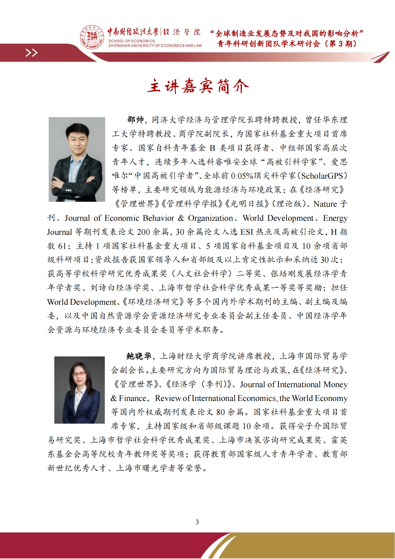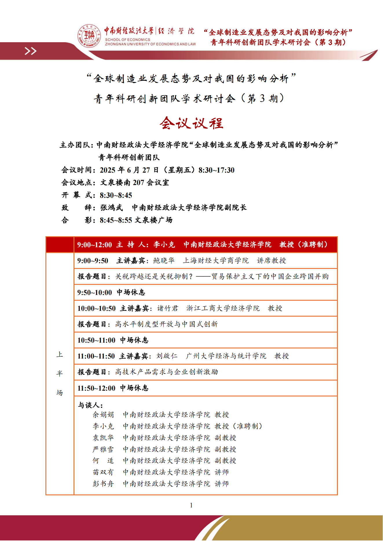 【学术会议】“全球制造业发展态势及对我国的影响分析’青年科研创新团队学术研讨会(第3期)