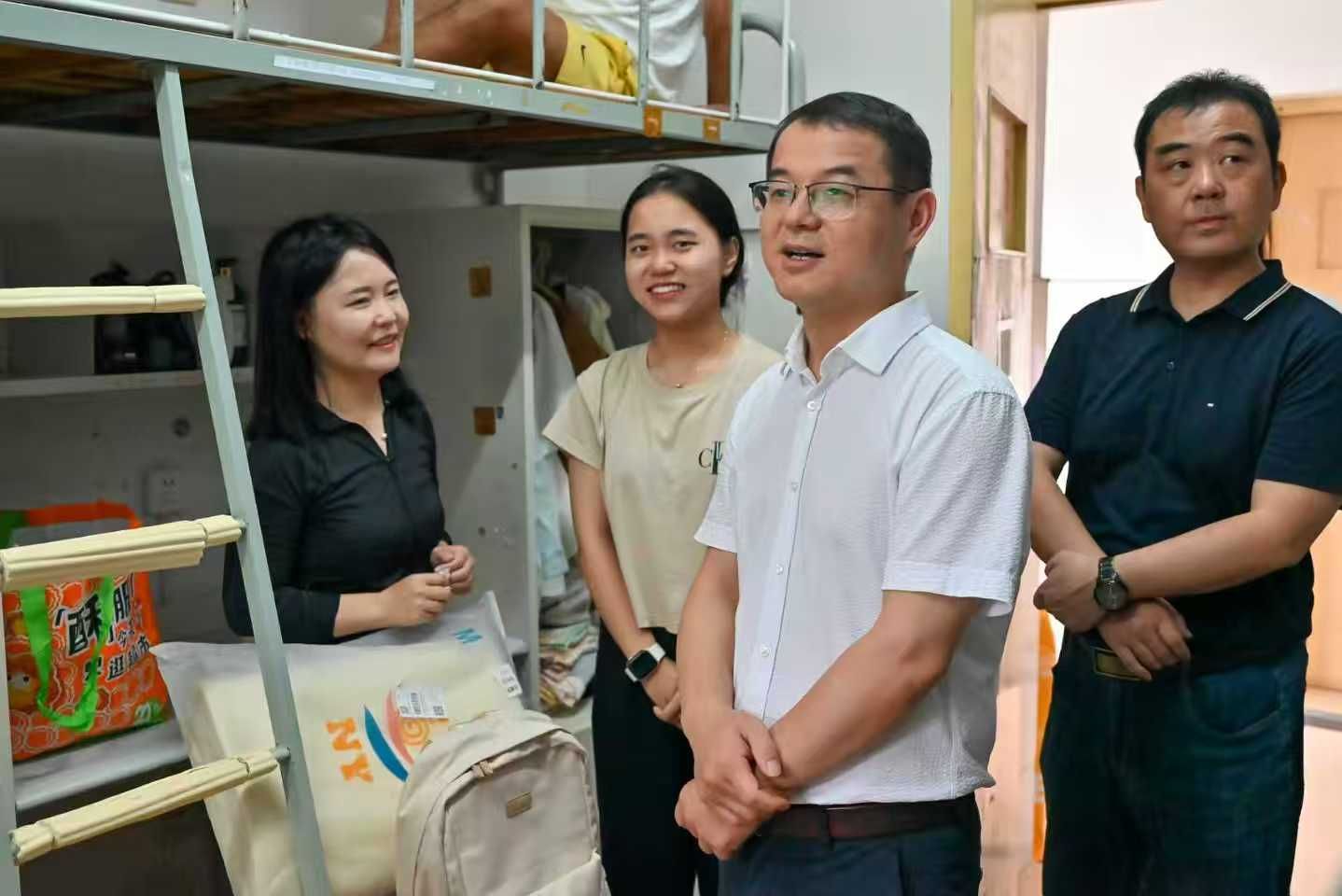 在南湖校区,经济学院党委书记刘刚一行深入研究生新生宿舍,走访慰问2025级新生及陪同家属,细致询问入住感受与实际需求,对宿舍设施逐一检查,发现问题现场记录、协调解决,明确“小问题立行立改,大问题限期跟进”的要求,全力保障研究生入住无忧。