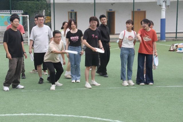 接下来的飞盘竞技将活动推向高潮。飞盘投掷赛中,小组成员在3米、5米、8米不同距离挑战投掷,每一次精准投中都伴随着阵阵欢呼;飞盘投靶赛里,大家在5米外瞄准靶布上的数字奋力投掷,为团队积分全力拼搏。现场欢呼与呐喊交织,尽显经院研究生的青春活力。