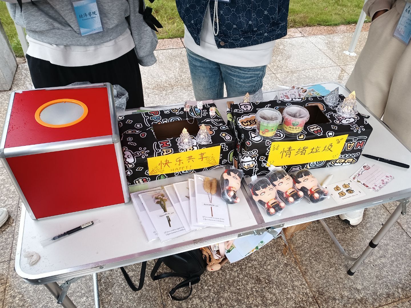 活动中特别设置的“抛弃烦恼”环节吸引了不少的路人。参与者们通过书写、倾诉等安全私密的方式,将学习、人际交往或自我成长中遇到的烦恼投入“烦恼箱”,以此告别压力,轻装前行。这一环节有效舒缓了同学们的心理压力,得到了广泛好评。完成活动的参与者还会得到一份精美的小礼品。
