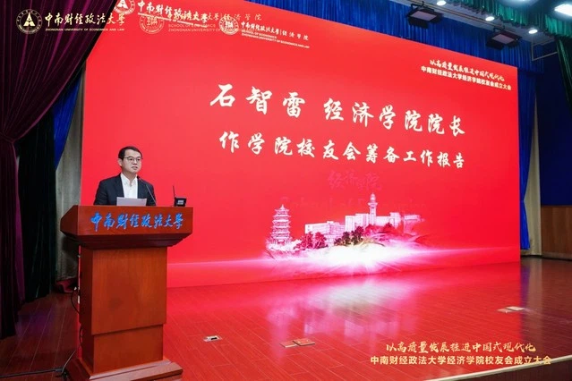 随后,经济学院院长石智雷作校友会筹备工作报告。梳理了校友会筹备的全过程,全面呈现了筹备工作的具体细节与阶段性成果,让全体参会人员清晰了解校友会的筹备情况。